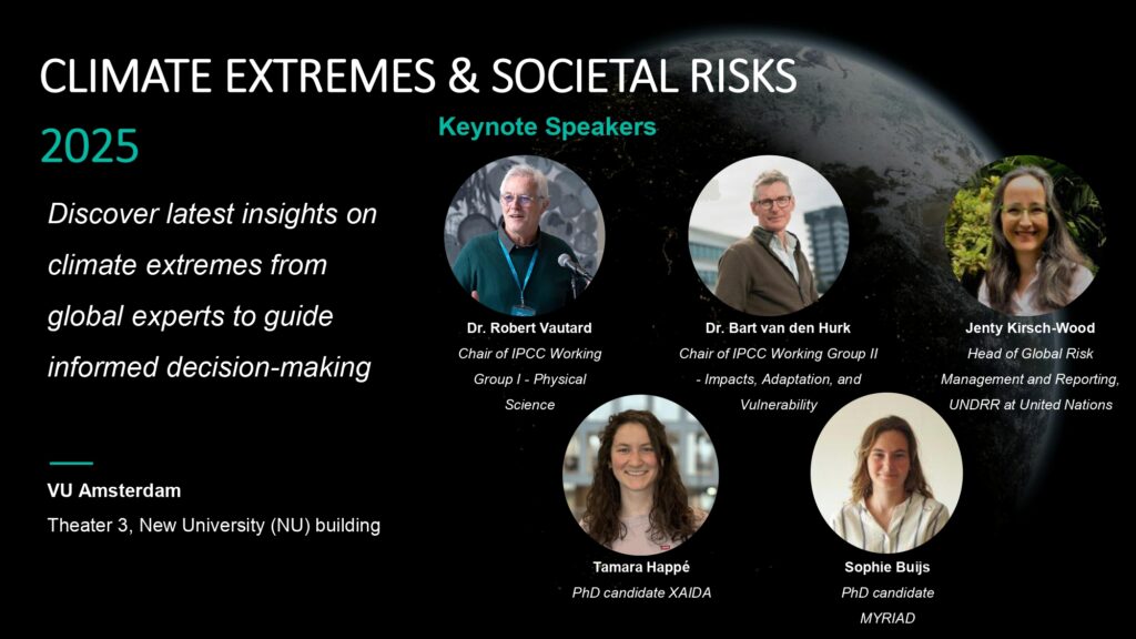 For this final event together with the MYRIAD project, XAIDA chose to focus on Climate Extremes & Societal Risks. This will take place at Vrije Universiteit Amsterdam on December 17th and 18th. A public event inviteing all partners and stakeholders will take place in the afternoon on December 17th.